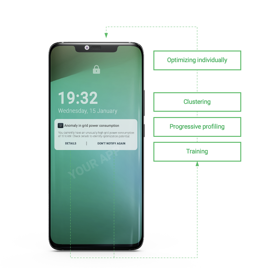 Whether it's optimizing energy usage, increasing solar self-consumption, or encouraging tariff participation, The MOOST Engagement Service enables you to send contextual, personalized messages and recommendations directly to households – automated, data-driven, and across multiple channels. Communication is powered by MOOST Profiling and orchestrated through the Rule Engine, ensuring your users are reached when it matters most – and motivated to take action.